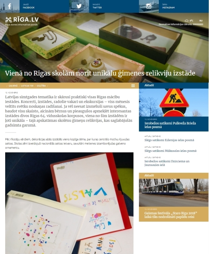 Portālā riga.lv publicēts pārskats par mūsu skolas senlietu izstādi.